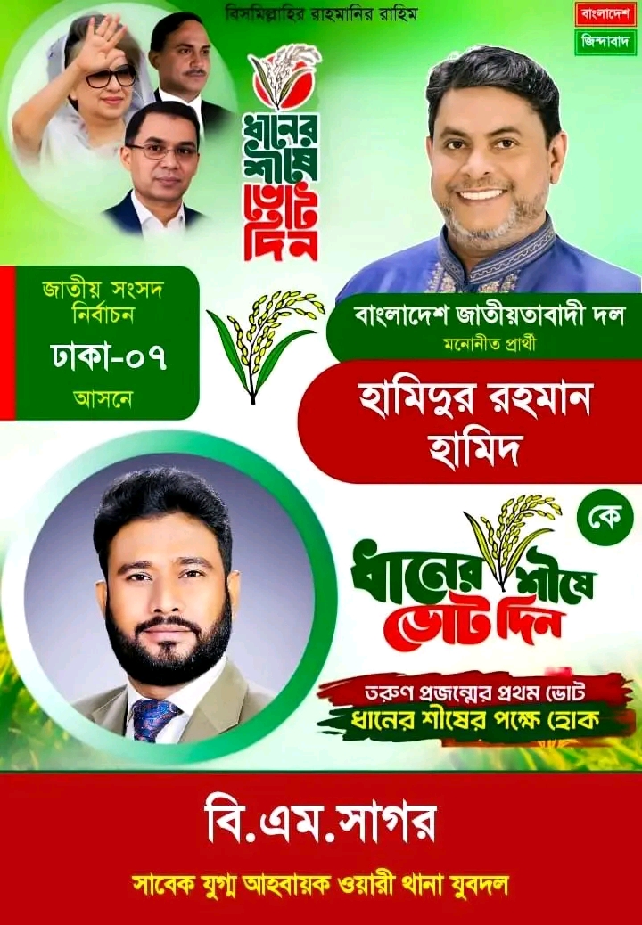 এলাকার উন্নয়ন, তরুণ সমাজের কর্মসংস্থান এবং ন্যায়ভিত্তিক সমাজ গঠনে তার সুস্পষ্ট পরিকল্পনা রয়েছে বলে জানান তিনি। ভোটারদের মতে, পুরান ঢাকা–৭ আসনে ধানের শীষের প্রার্থী হামিদুর রহমানের কোনো বিকল্প নেই।